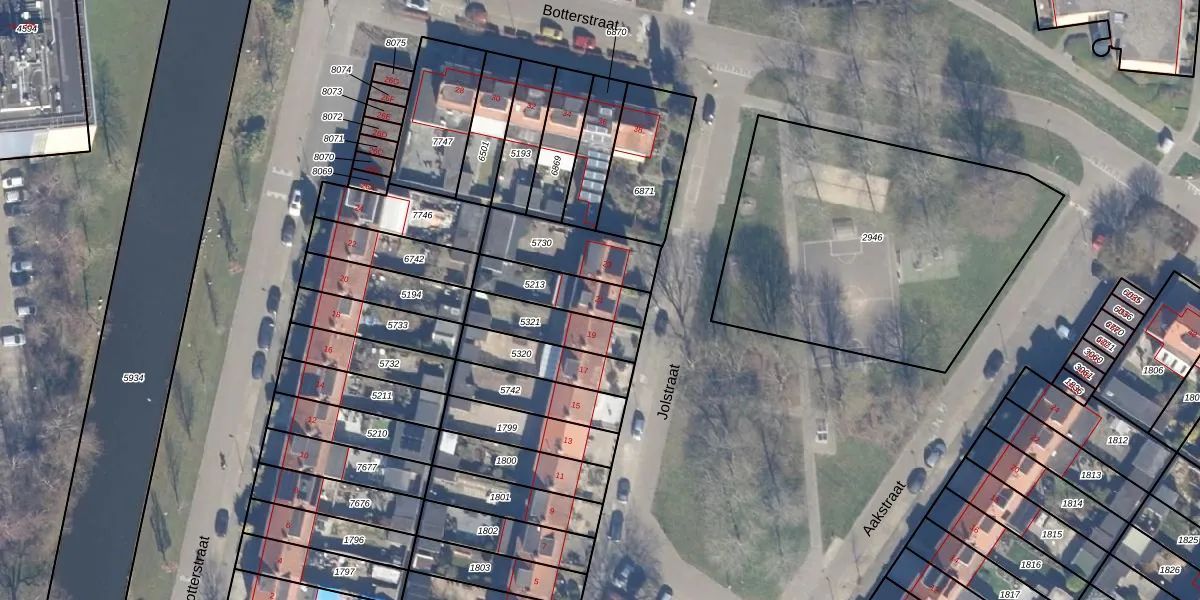 Het perceel waarop Jolstraat 21 staat heeft een oppervlakte van 175 m². Dit is een middelgroot perceel. De perceeloppervlakte wordt geregistreerd door het Kadaster. Gedetailleerde informatie over de maten van dit perceel kunt u vinden in het rapport Kadastrale kaart met maatvoering van Jolstraat 21.
