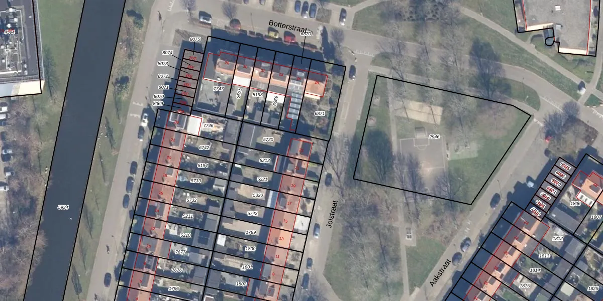 Het perceel waarop Jolstraat 23 staat heeft een oppervlakte van 234 m². Dit is een middelgroot perceel. De perceeloppervlakte wordt geregistreerd door het Kadaster. Gedetailleerde informatie over de maten van dit perceel kunt u vinden in het rapport Kadastrale kaart met maatvoering van Jolstraat 23.