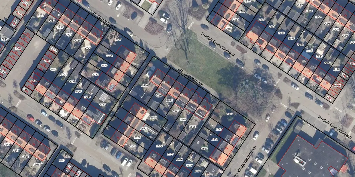 Het perceel waarop J.P. Grootstraat 80 staat heeft een oppervlakte van 158 m². Dit is een middelgroot perceel. De perceeloppervlakte wordt geregistreerd door het Kadaster. Gedetailleerde informatie over de maten van dit perceel kunt u vinden in het rapport Kadastrale kaart met maatvoering van J.P. Grootstraat 80.