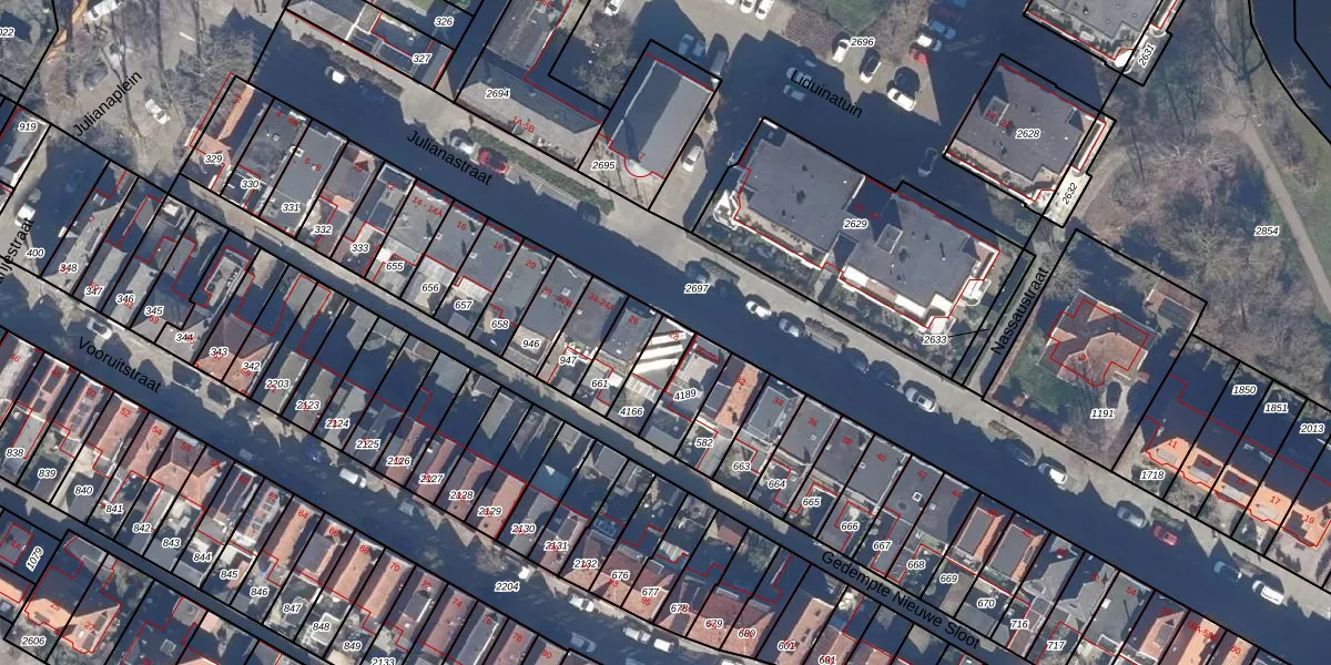 Het perceel waarop Julianastraat 28 staat heeft een oppervlakte van 99 m². Dit is een klein perceel. De perceeloppervlakte wordt geregistreerd door het Kadaster. Gedetailleerde informatie over de maten van dit perceel kunt u vinden in het rapport Kadastrale kaart met maatvoering van Julianastraat 28.
