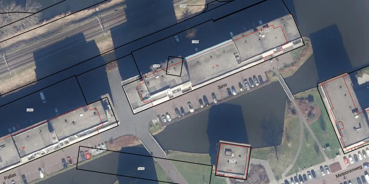 Juno 14 is gelegen op kadastraal perceel PMR00D7394. Deze kadastrale aanduiding is uniek en wordt gebruikt door het Kadaster om eigendomsrechten en andere zakelijke rechten vast te leggen. Het perceel maakt onderdeel uit van de kadastrale gemeente Purmerend.