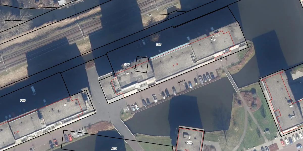 Juno 45 is gelegen op kadastraal perceel PMR00D7394. Deze kadastrale aanduiding is uniek en wordt gebruikt door het Kadaster om eigendomsrechten en andere zakelijke rechten vast te leggen. Het perceel maakt onderdeel uit van de kadastrale gemeente Purmerend.