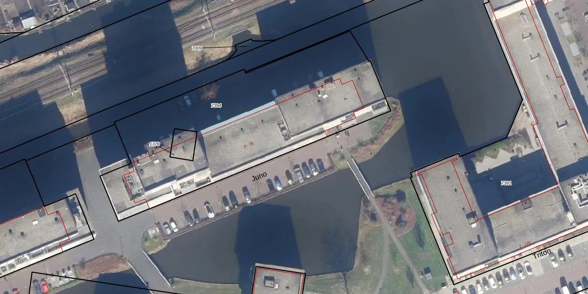 Het perceel waarop Juno 5 staat heeft een oppervlakte van 2860 m². Dit is een zeer groot perceel. De perceeloppervlakte wordt geregistreerd door het Kadaster. Gedetailleerde informatie over de maten van dit perceel kunt u vinden in het rapport Kadastrale kaart met maatvoering van Juno 5.
