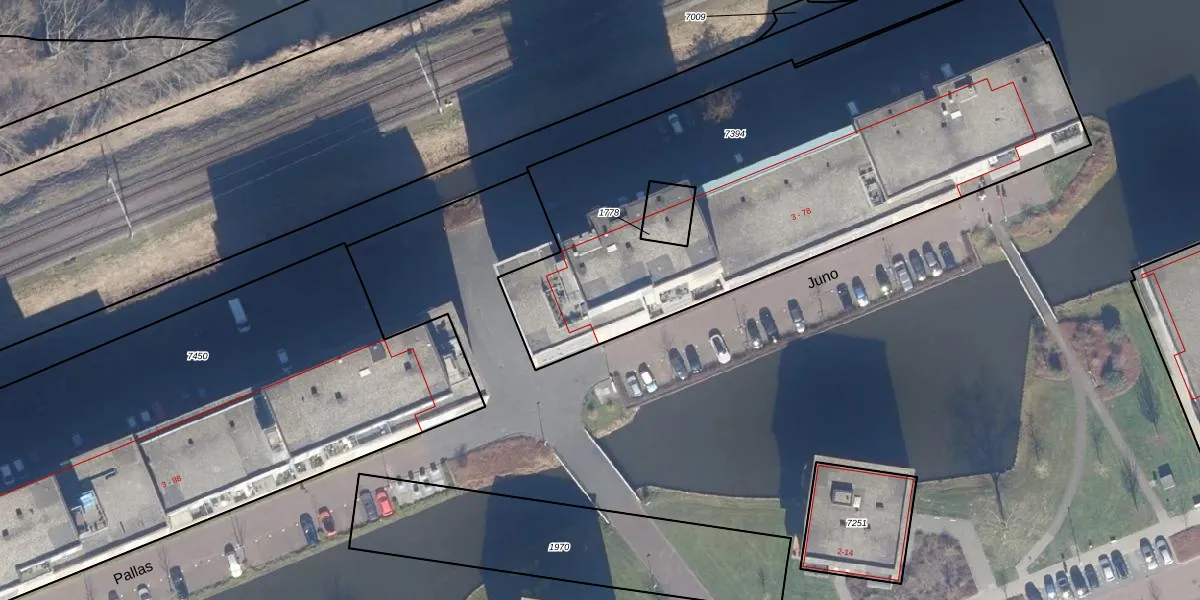 Het perceel waarop Juno 50 staat heeft een oppervlakte van 2860 m². Dit is een zeer groot perceel. De perceeloppervlakte wordt geregistreerd door het Kadaster. Gedetailleerde informatie over de maten van dit perceel kunt u vinden in het rapport Kadastrale kaart met maatvoering van Juno 50.