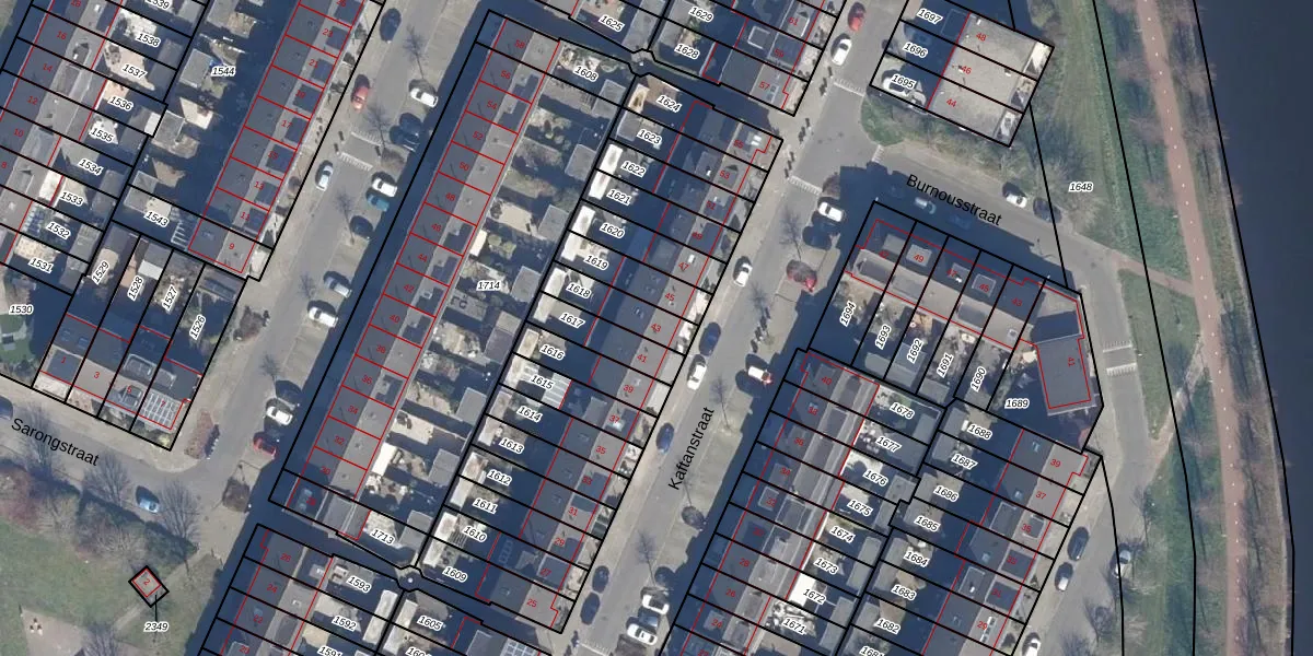 Kaftanstraat 43 is gelegen op kadastraal perceel PMR00N1618. Deze kadastrale aanduiding is uniek en wordt gebruikt door het Kadaster om eigendomsrechten en andere zakelijke rechten vast te leggen. Het perceel maakt onderdeel uit van de kadastrale gemeente Purmerend.