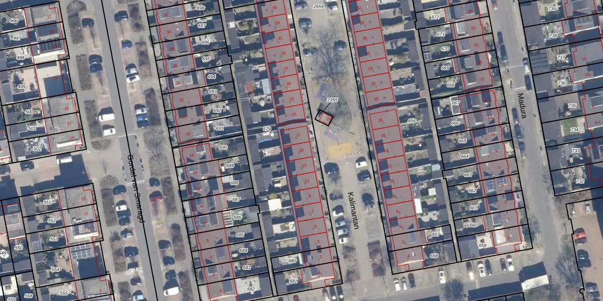 Het perceel waarop Kalimantan 15 staat heeft een oppervlakte van 1997 m². Dit is een zeer groot perceel. De perceeloppervlakte wordt geregistreerd door het Kadaster. Gedetailleerde informatie over de maten van dit perceel kunt u vinden in het rapport Kadastrale kaart met maatvoering van Kalimantan 15.
