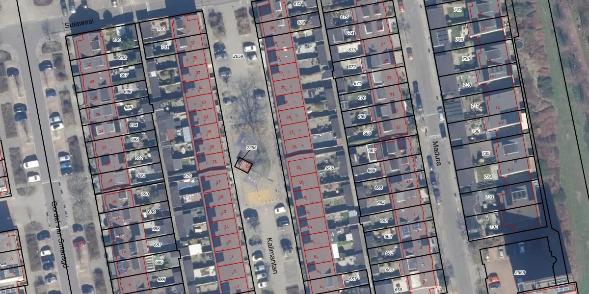 Kalimantan 20 is gelegen op kadastraal perceel PMR00N656. Deze kadastrale aanduiding is uniek en wordt gebruikt door het Kadaster om eigendomsrechten en andere zakelijke rechten vast te leggen. Het perceel maakt onderdeel uit van de kadastrale gemeente Purmerend.