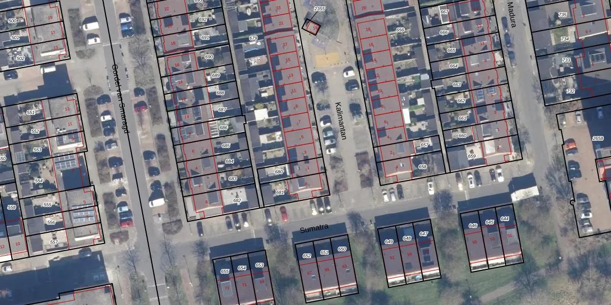 Het perceel waarop Kalimantan 3 staat heeft een oppervlakte van 1997 m². Dit is een zeer groot perceel. De perceeloppervlakte wordt geregistreerd door het Kadaster. Gedetailleerde informatie over de maten van dit perceel kunt u vinden in het rapport Kadastrale kaart met maatvoering van Kalimantan 3.