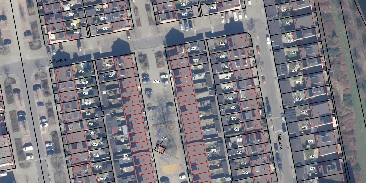 Het perceel waarop Kalimantan 30 staat heeft een oppervlakte van 1986 m². Dit is een zeer groot perceel. De perceeloppervlakte wordt geregistreerd door het Kadaster. Gedetailleerde informatie over de maten van dit perceel kunt u vinden in het rapport Kadastrale kaart met maatvoering van Kalimantan 30.