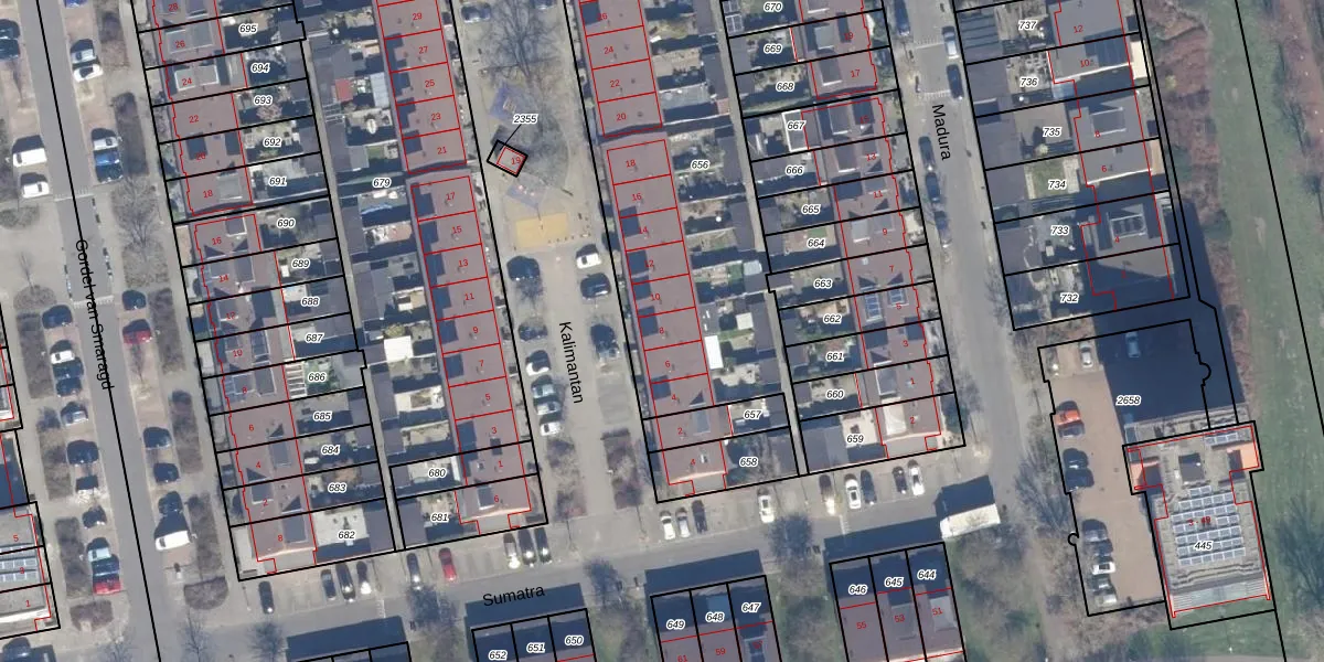 Het perceel waarop Kalimantan 8 staat heeft een oppervlakte van 1986 m². Dit is een zeer groot perceel. De perceeloppervlakte wordt geregistreerd door het Kadaster. Gedetailleerde informatie over de maten van dit perceel kunt u vinden in het rapport Kadastrale kaart met maatvoering van Kalimantan 8.