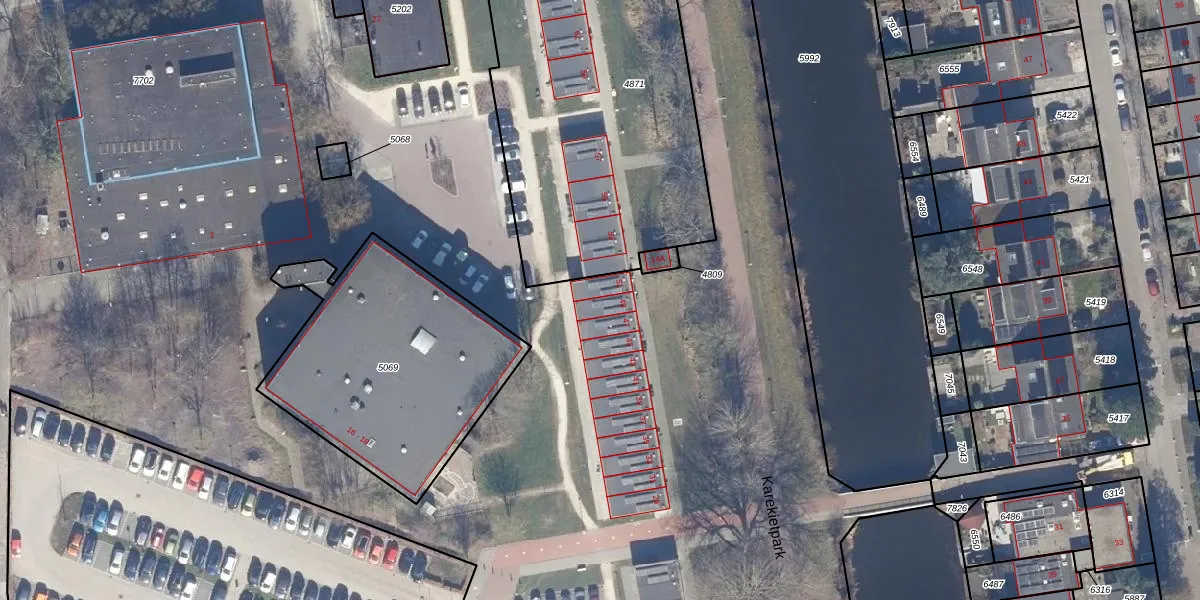 Het perceel waarop Karekietpark 49 staat heeft een oppervlakte van 6,5 ha. Dit is een zeer groot perceel. De perceeloppervlakte wordt geregistreerd door het Kadaster. Gedetailleerde informatie over de maten van dit perceel kunt u vinden in het rapport Kadastrale kaart met maatvoering van Karekietpark 49.