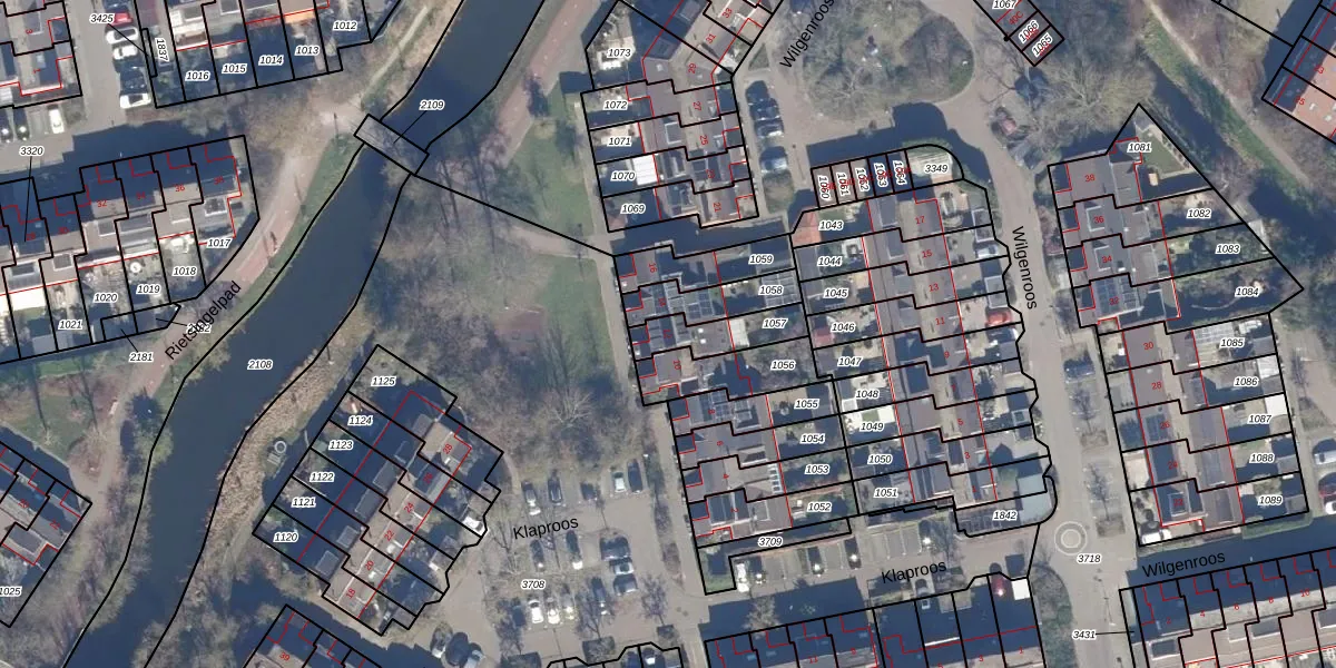 Gebruik de zoekbalk of klik op een perceel voor informatie over de adressen binnen dit perceel.