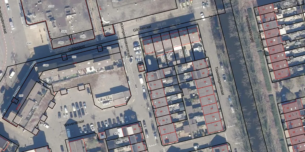 Gebruik de zoekbalk of klik op een perceel voor informatie over de adressen binnen dit perceel.
