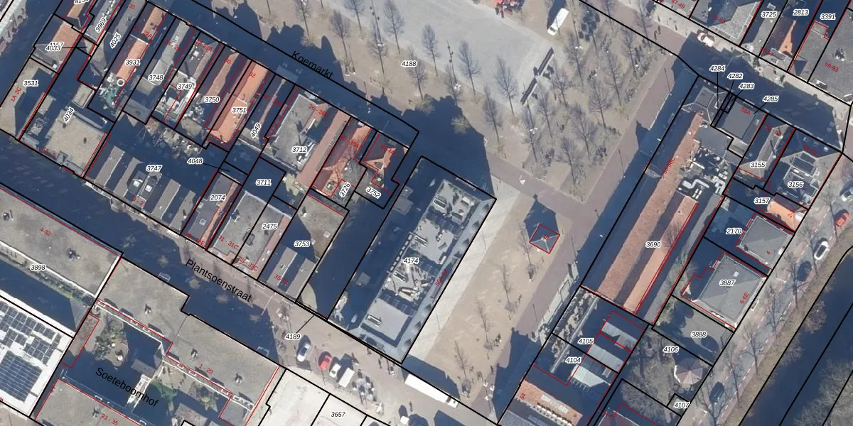Het perceel waarop Koemarkt 50-B staat heeft een oppervlakte van 905 m². Dit is een groot perceel. De perceeloppervlakte wordt geregistreerd door het Kadaster. Gedetailleerde informatie over de maten van dit perceel kunt u vinden in het rapport Kadastrale kaart met maatvoering van Koemarkt 50-B.