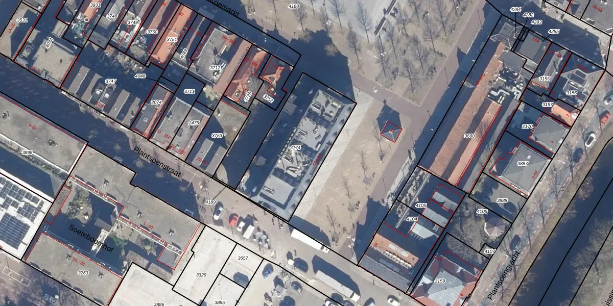Het perceel waarop Koemarkt 52 staat heeft een oppervlakte van 905 m². Dit is een groot perceel. De perceeloppervlakte wordt geregistreerd door het Kadaster. Gedetailleerde informatie over de maten van dit perceel kunt u vinden in het rapport Kadastrale kaart met maatvoering van Koemarkt 52.