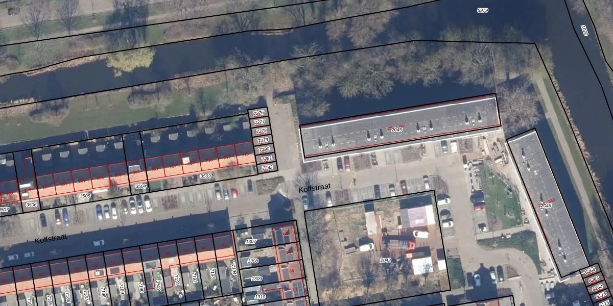 Het perceel waarop Kolfstraat 235 staat heeft een oppervlakte van 703 m². Dit is een groot perceel. De perceeloppervlakte wordt geregistreerd door het Kadaster. Gedetailleerde informatie over de maten van dit perceel kunt u vinden in het rapport Kadastrale kaart met maatvoering van Kolfstraat 235.