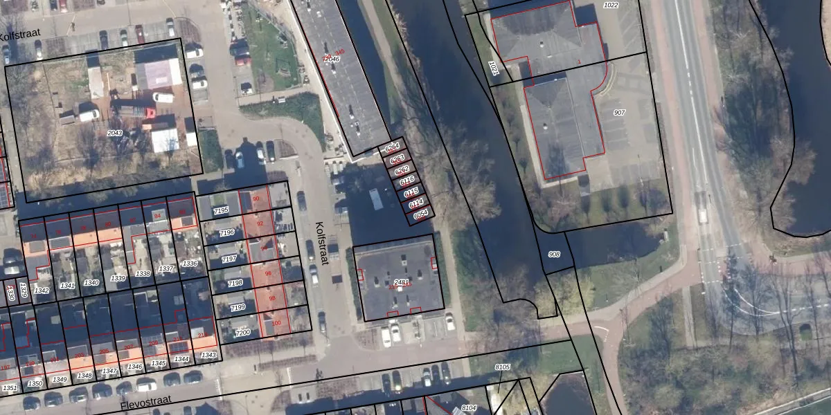 Gebruik de zoekbalk of klik op een perceel voor informatie over de adressen binnen dit perceel.