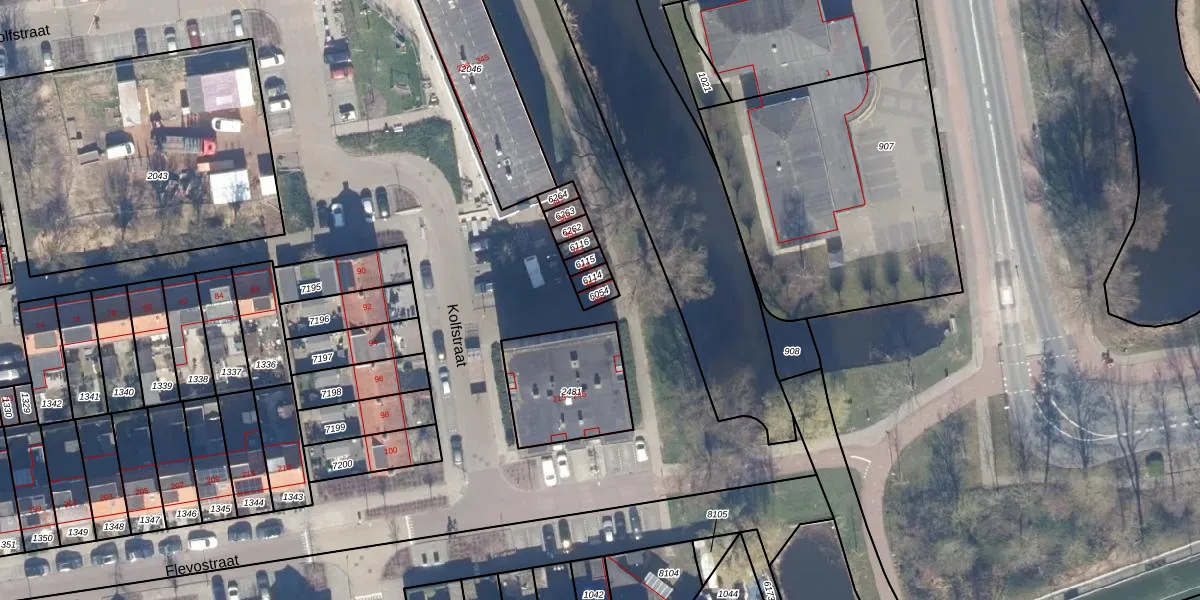 Gebruik de zoekbalk of klik op een perceel voor informatie over de adressen binnen dit perceel.