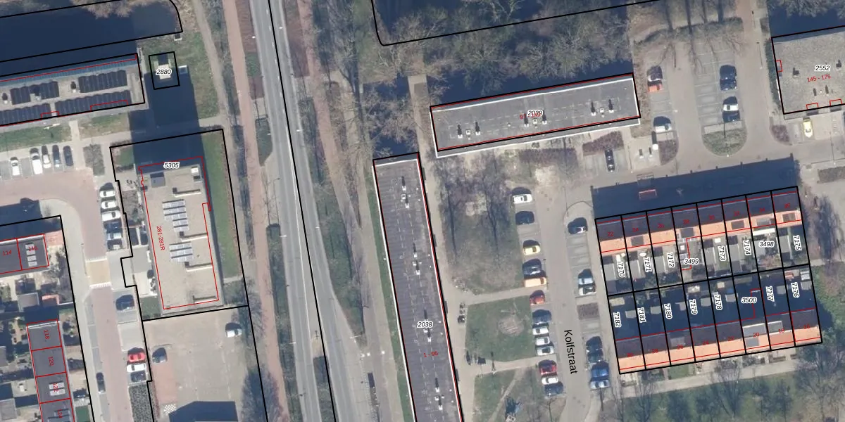 Het perceel waarop Kolfstraat 83 staat heeft een oppervlakte van 1048 m². Dit is een zeer groot perceel. De perceeloppervlakte wordt geregistreerd door het Kadaster. Gedetailleerde informatie over de maten van dit perceel kunt u vinden in het rapport Kadastrale kaart met maatvoering van Kolfstraat 83.