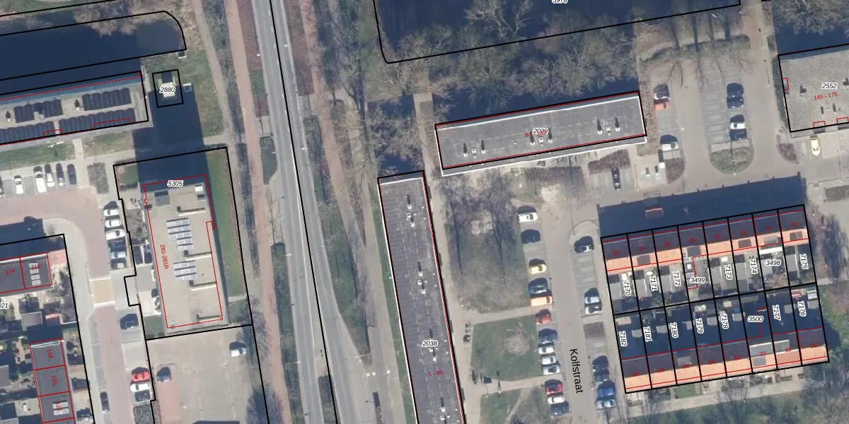 Het perceel waarop Kolfstraat 87 staat heeft een oppervlakte van 1048 m². Dit is een zeer groot perceel. De perceeloppervlakte wordt geregistreerd door het Kadaster. Gedetailleerde informatie over de maten van dit perceel kunt u vinden in het rapport Kadastrale kaart met maatvoering van Kolfstraat 87.