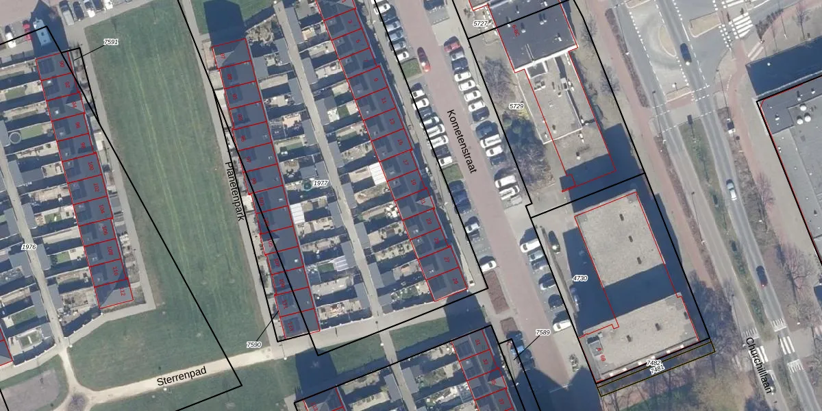 Het perceel waarop Kometenstraat 21 staat heeft een oppervlakte van 4373 m². Dit is een zeer groot perceel. De perceeloppervlakte wordt geregistreerd door het Kadaster. Gedetailleerde informatie over de maten van dit perceel kunt u vinden in het rapport Kadastrale kaart met maatvoering van Kometenstraat 21.