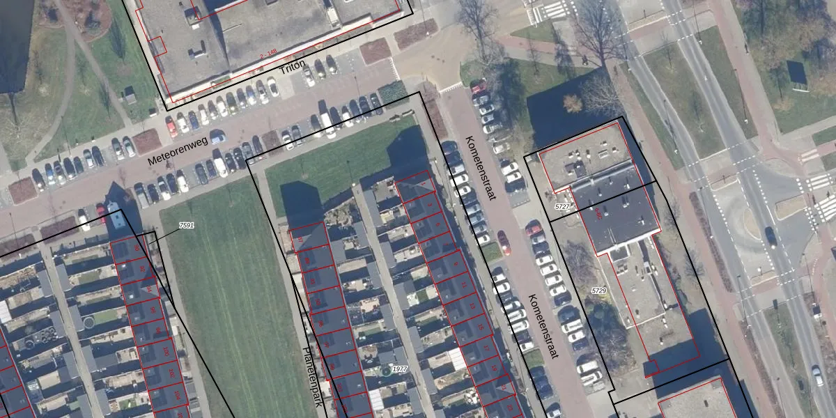 Het perceel waarop Kometenstraat 3 staat heeft een oppervlakte van 4373 m². Dit is een zeer groot perceel. De perceeloppervlakte wordt geregistreerd door het Kadaster. Gedetailleerde informatie over de maten van dit perceel kunt u vinden in het rapport Kadastrale kaart met maatvoering van Kometenstraat 3.