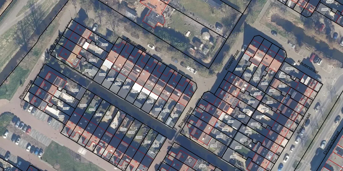 Gebruik de zoekbalk of klik op een perceel voor informatie over de adressen binnen dit perceel.