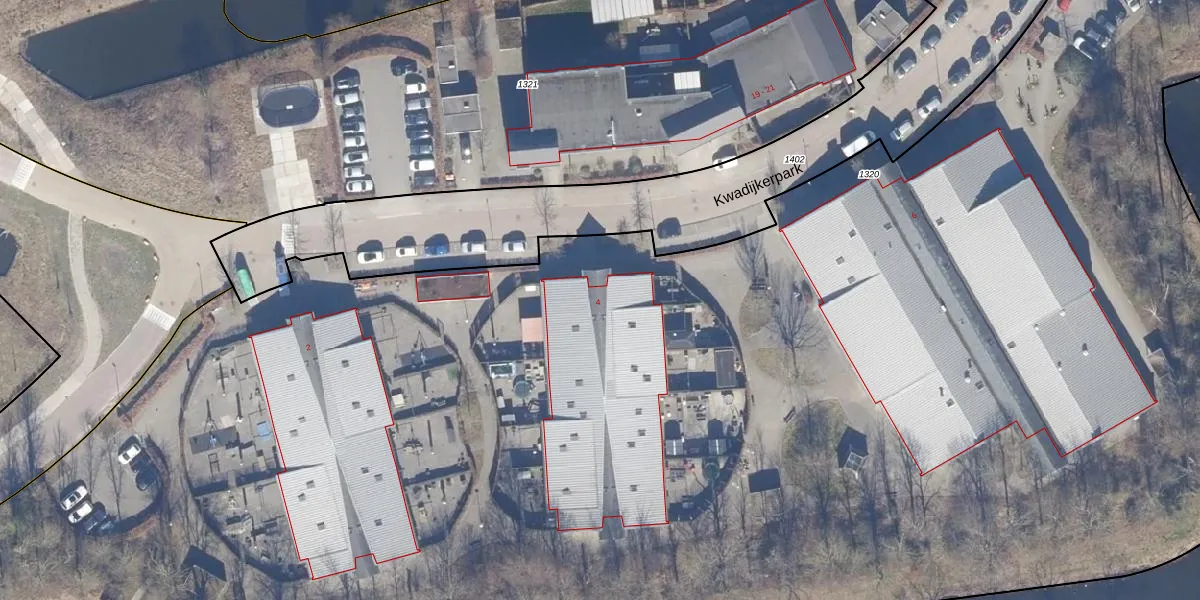Het perceel waarop Kwadijkerpark 4 staat heeft een oppervlakte van 2,1 ha. Dit is een zeer groot perceel. De perceeloppervlakte wordt geregistreerd door het Kadaster. Gedetailleerde informatie over de maten van dit perceel kunt u vinden in het rapport Kadastrale kaart met maatvoering van Kwadijkerpark 4.