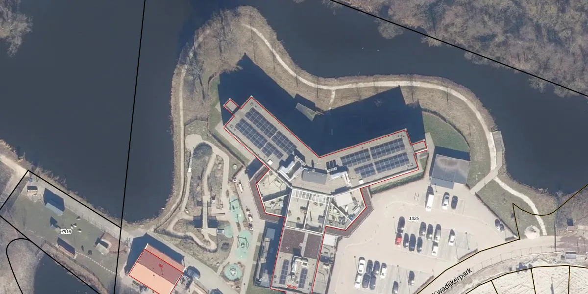 Het perceel waarop Kwadijkerpark 54 staat heeft een oppervlakte van 2,3 ha. Dit is een zeer groot perceel. De perceeloppervlakte wordt geregistreerd door het Kadaster. Gedetailleerde informatie over de maten van dit perceel kunt u vinden in het rapport Kadastrale kaart met maatvoering van Kwadijkerpark 54.