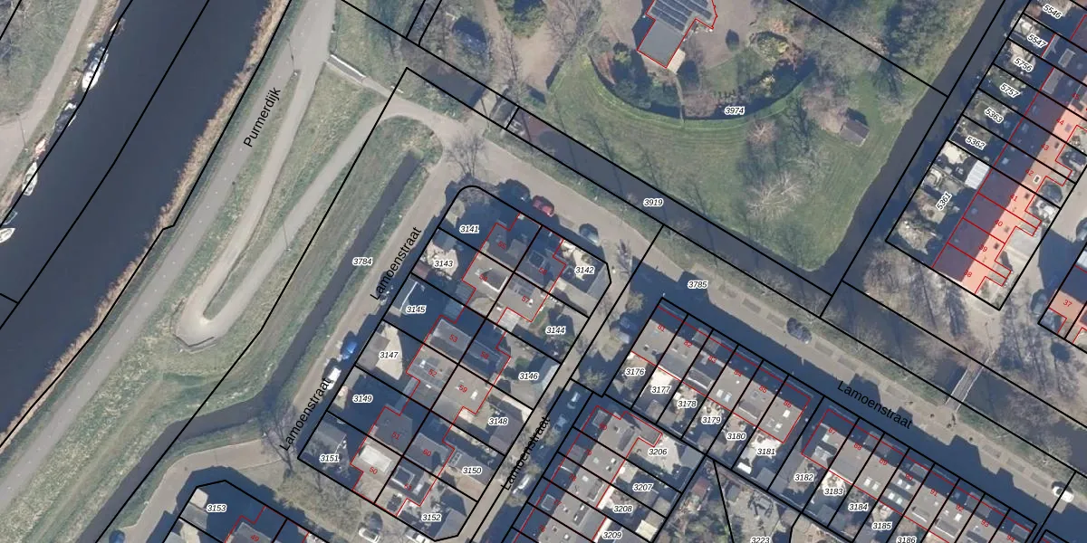 Lamoenstraat 56 is gelegen op kadastraal perceel PMR00A3142. Deze kadastrale aanduiding is uniek en wordt gebruikt door het Kadaster om eigendomsrechten en andere zakelijke rechten vast te leggen. Het perceel maakt onderdeel uit van de kadastrale gemeente Purmerend.
