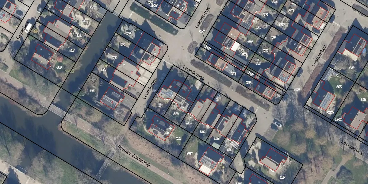 Leenderbos 24 is gelegen op kadastraal perceel PMR00H969. Deze kadastrale aanduiding is uniek en wordt gebruikt door het Kadaster om eigendomsrechten en andere zakelijke rechten vast te leggen. Het perceel maakt onderdeel uit van de kadastrale gemeente Purmerend.