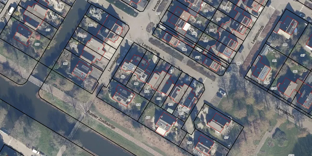 Leenderbos 26 is gelegen op kadastraal perceel PMR00H970. Deze kadastrale aanduiding is uniek en wordt gebruikt door het Kadaster om eigendomsrechten en andere zakelijke rechten vast te leggen. Het perceel maakt onderdeel uit van de kadastrale gemeente Purmerend.