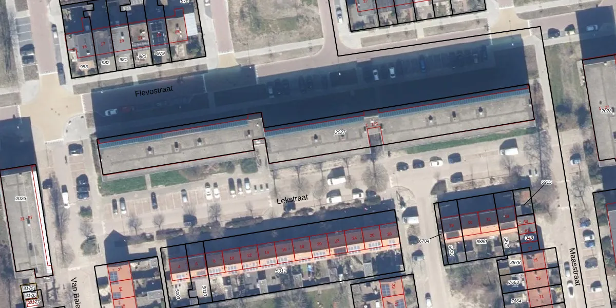 Het perceel waarop Lekstraat 53 staat heeft een oppervlakte van 1630 m². Dit is een zeer groot perceel. De perceeloppervlakte wordt geregistreerd door het Kadaster. Gedetailleerde informatie over de maten van dit perceel kunt u vinden in het rapport Kadastrale kaart met maatvoering van Lekstraat 53.