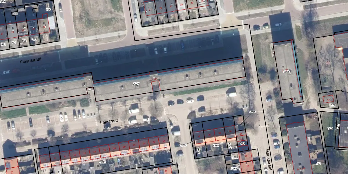 Het perceel waarop Lekstraat 77 staat heeft een oppervlakte van 1630 m². Dit is een zeer groot perceel. De perceeloppervlakte wordt geregistreerd door het Kadaster. Gedetailleerde informatie over de maten van dit perceel kunt u vinden in het rapport Kadastrale kaart met maatvoering van Lekstraat 77.