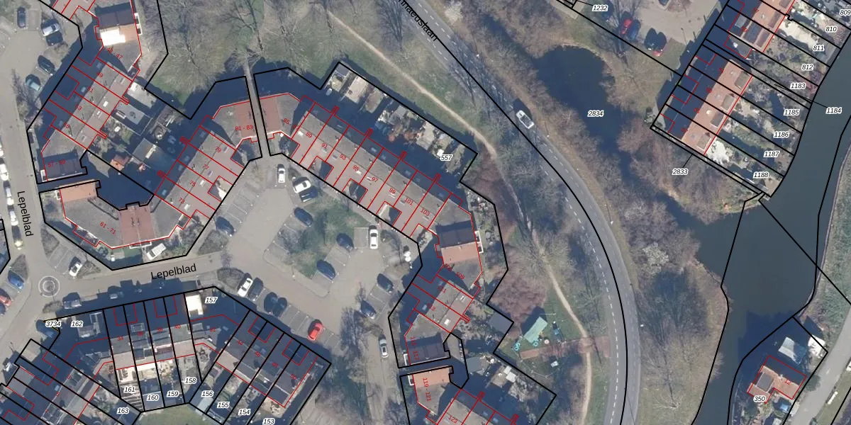 Het perceel waarop Lepelblad 103 staat heeft een oppervlakte van 2618 m². Dit is een zeer groot perceel. De perceeloppervlakte wordt geregistreerd door het Kadaster. Gedetailleerde informatie over de maten van dit perceel kunt u vinden in het rapport Kadastrale kaart met maatvoering van Lepelblad 103.