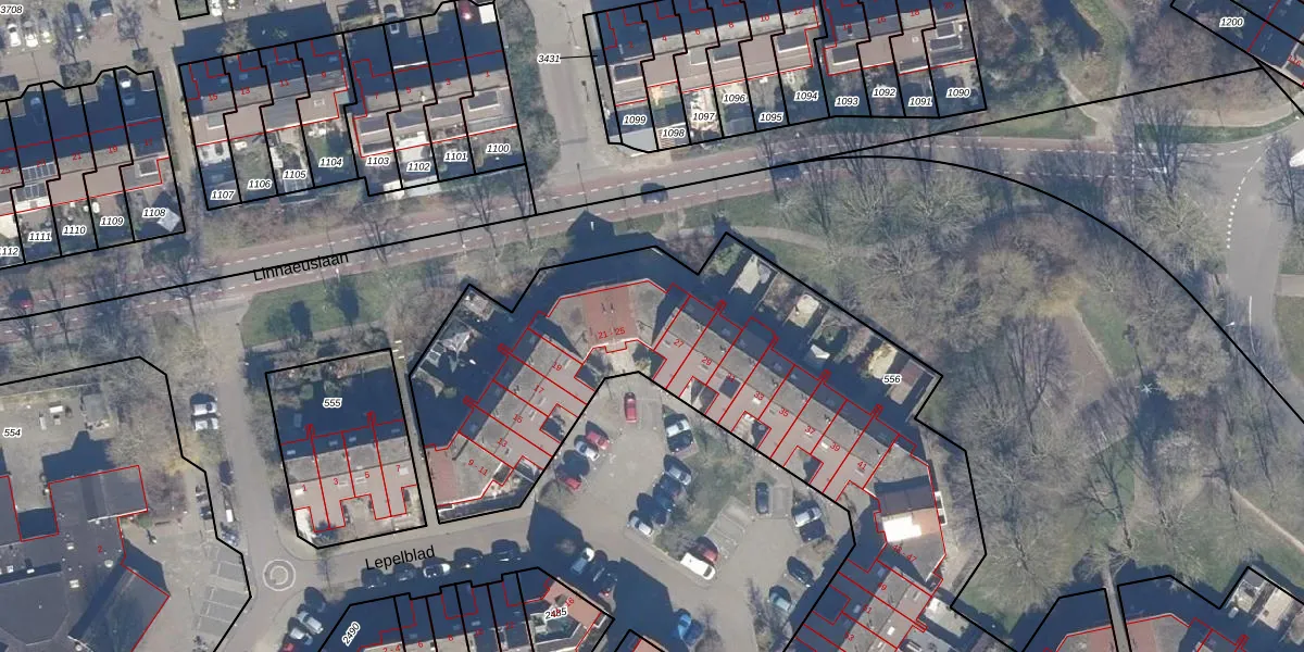 Het perceel waarop Lepelblad 25 staat heeft een oppervlakte van 4104 m². Dit is een zeer groot perceel. De perceeloppervlakte wordt geregistreerd door het Kadaster. Gedetailleerde informatie over de maten van dit perceel kunt u vinden in het rapport Kadastrale kaart met maatvoering van Lepelblad 25.