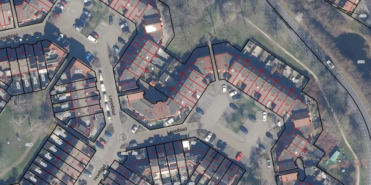 Het perceel waarop Lepelblad 75 staat heeft een oppervlakte van 4104 m². Dit is een zeer groot perceel. De perceeloppervlakte wordt geregistreerd door het Kadaster. Gedetailleerde informatie over de maten van dit perceel kunt u vinden in het rapport Kadastrale kaart met maatvoering van Lepelblad 75.
