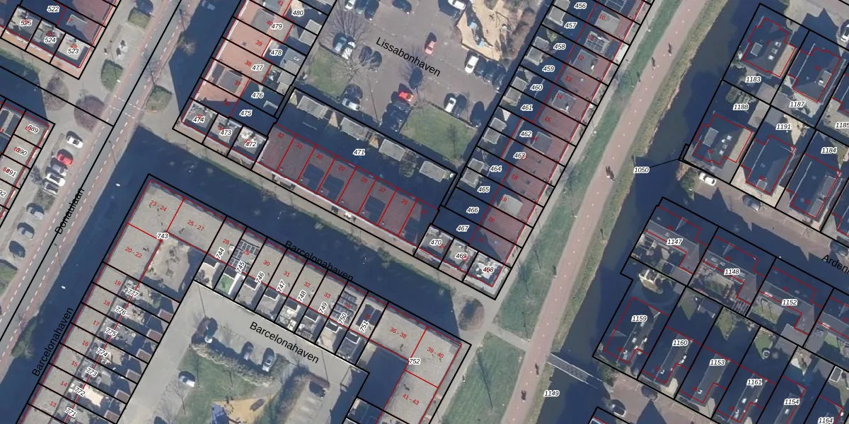Het perceel waarop Lissabonhaven 25 staat heeft een oppervlakte van 960 m². Dit is een groot perceel. De perceeloppervlakte wordt geregistreerd door het Kadaster. Gedetailleerde informatie over de maten van dit perceel kunt u vinden in het rapport Kadastrale kaart met maatvoering van Lissabonhaven 25.