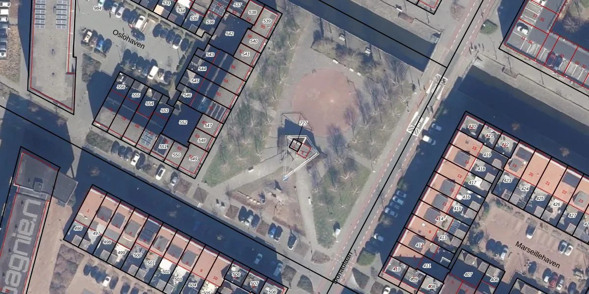 Gebruik de zoekbalk of klik op een perceel voor informatie over de adressen binnen dit perceel.