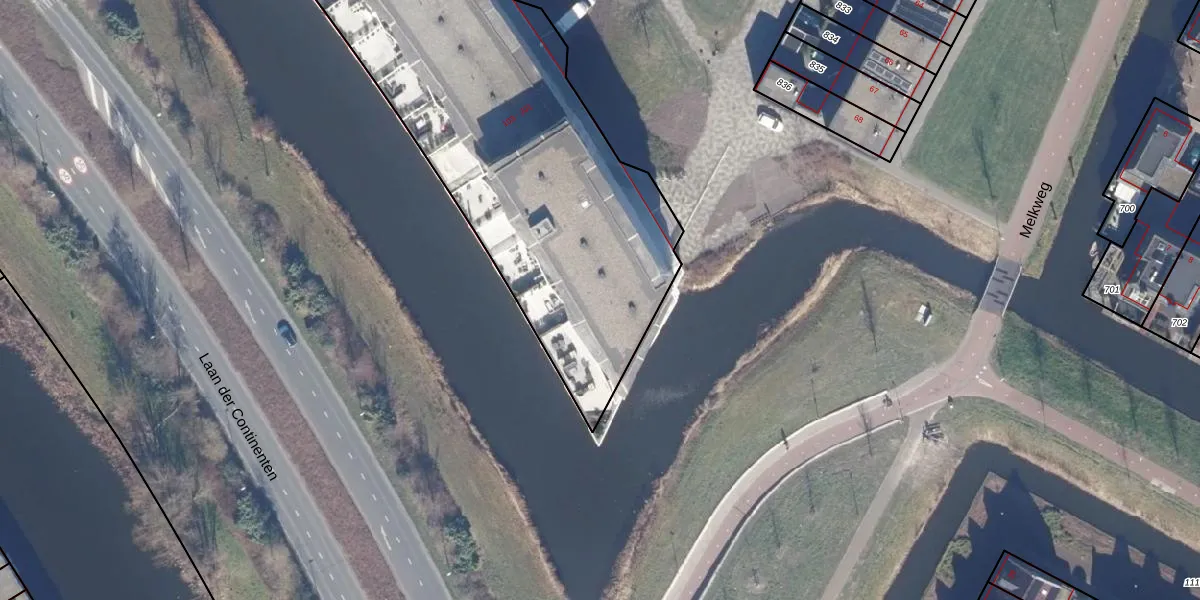 Het perceel waarop Londenhaven 105 staat heeft een oppervlakte van 4120 m². Dit is een zeer groot perceel. De perceeloppervlakte wordt geregistreerd door het Kadaster. Gedetailleerde informatie over de maten van dit perceel kunt u vinden in het rapport Kadastrale kaart met maatvoering van Londenhaven 105.