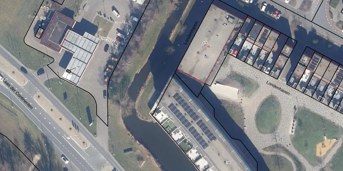 Het perceel waarop Londenhaven 201 staat heeft een oppervlakte van 4120 m². Dit is een zeer groot perceel. De perceeloppervlakte wordt geregistreerd door het Kadaster. Gedetailleerde informatie over de maten van dit perceel kunt u vinden in het rapport Kadastrale kaart met maatvoering van Londenhaven 201.