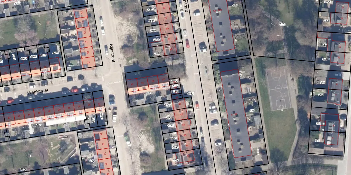 Gebruik de zoekbalk of klik op een perceel voor informatie over de adressen binnen dit perceel.