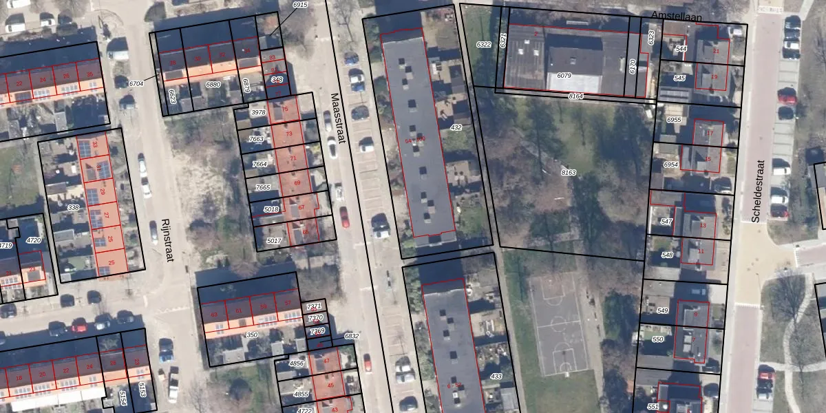 Het perceel waarop Maasstraat 62 staat heeft een oppervlakte van 1316 m². Dit is een zeer groot perceel. De perceeloppervlakte wordt geregistreerd door het Kadaster. Gedetailleerde informatie over de maten van dit perceel kunt u vinden in het rapport Kadastrale kaart met maatvoering van Maasstraat 62.