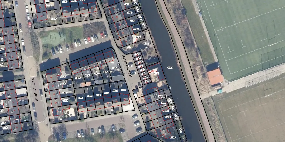 Het perceel waarop Marathonstraat 64 staat heeft een oppervlakte van 19 m². Dit is een klein perceel. De perceeloppervlakte wordt geregistreerd door het Kadaster. Gedetailleerde informatie over de maten van dit perceel kunt u vinden in het rapport Kadastrale kaart met maatvoering van Marathonstraat 64.