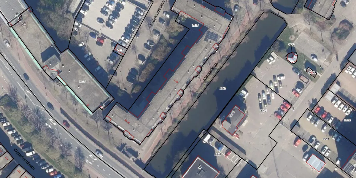 Het perceel waarop Markerkade 12 staat heeft een oppervlakte van 1975 m². Dit is een zeer groot perceel. De perceeloppervlakte wordt geregistreerd door het Kadaster. Gedetailleerde informatie over de maten van dit perceel kunt u vinden in het rapport Kadastrale kaart met maatvoering van Markerkade 12.