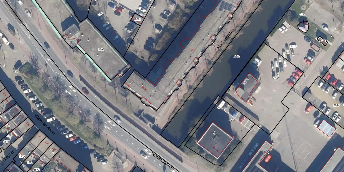 Het perceel waarop Markerkade 3 staat heeft een oppervlakte van 1975 m². Dit is een zeer groot perceel. De perceeloppervlakte wordt geregistreerd door het Kadaster. Gedetailleerde informatie over de maten van dit perceel kunt u vinden in het rapport Kadastrale kaart met maatvoering van Markerkade 3.
