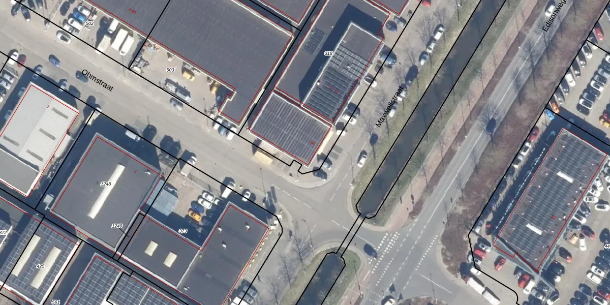 Het perceel waarop Maxwellstraat 14 staat heeft een oppervlakte van 2266 m². Dit is een zeer groot perceel. De perceeloppervlakte wordt geregistreerd door het Kadaster. Gedetailleerde informatie over de maten van dit perceel kunt u vinden in het rapport Kadastrale kaart met maatvoering van Maxwellstraat 14.