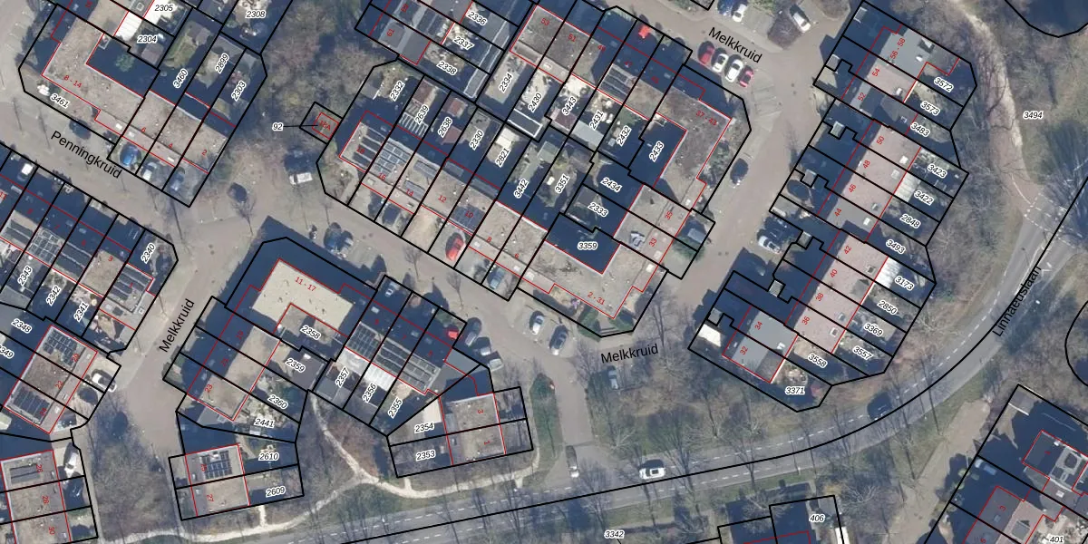 Het perceel waarop Melkkruid 4 staat heeft een oppervlakte van 363 m². Dit is een groot perceel. De perceeloppervlakte wordt geregistreerd door het Kadaster. Gedetailleerde informatie over de maten van dit perceel kunt u vinden in het rapport Kadastrale kaart met maatvoering van Melkkruid 4.