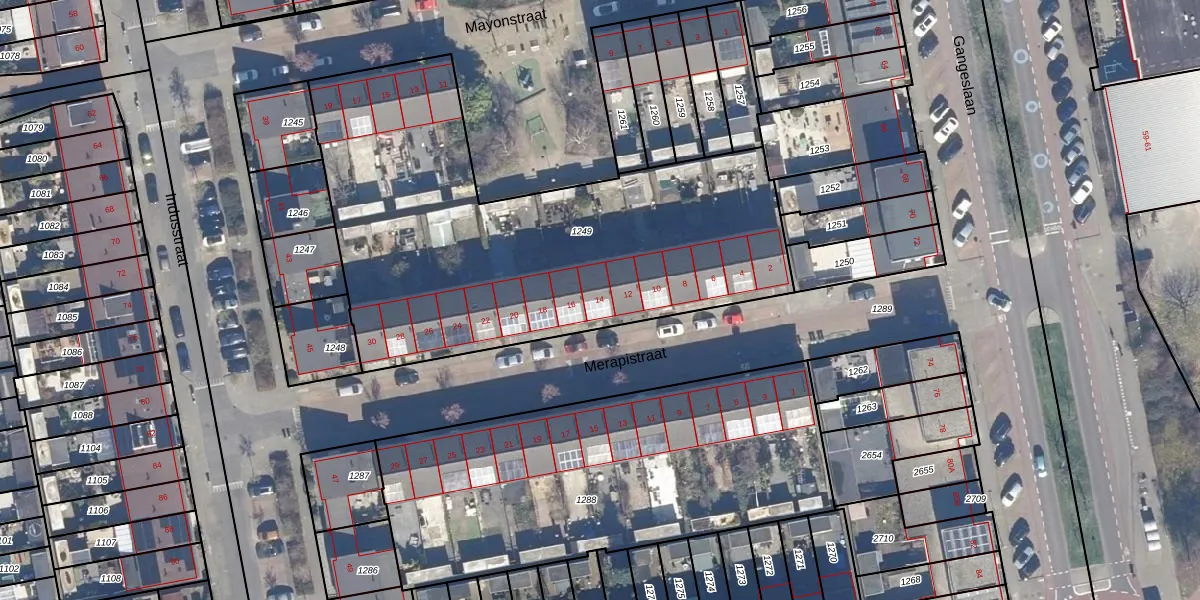 Het perceel waarop Merapistraat 14 staat heeft een oppervlakte van 2397 m². Dit is een zeer groot perceel. De perceeloppervlakte wordt geregistreerd door het Kadaster. Gedetailleerde informatie over de maten van dit perceel kunt u vinden in het rapport Kadastrale kaart met maatvoering van Merapistraat 14.