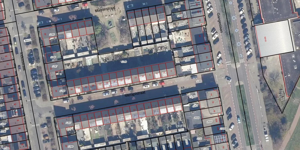 Het perceel waarop Merapistraat 8 staat heeft een oppervlakte van 2397 m². Dit is een zeer groot perceel. De perceeloppervlakte wordt geregistreerd door het Kadaster. Gedetailleerde informatie over de maten van dit perceel kunt u vinden in het rapport Kadastrale kaart met maatvoering van Merapistraat 8.